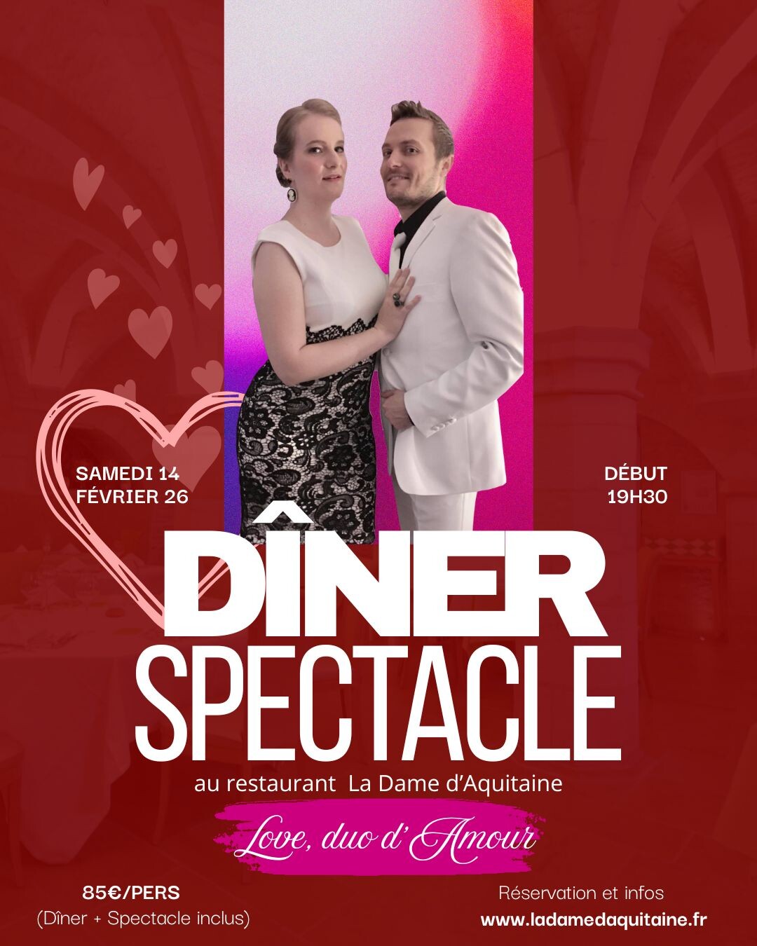 85€/pers (spectacle + dîner)